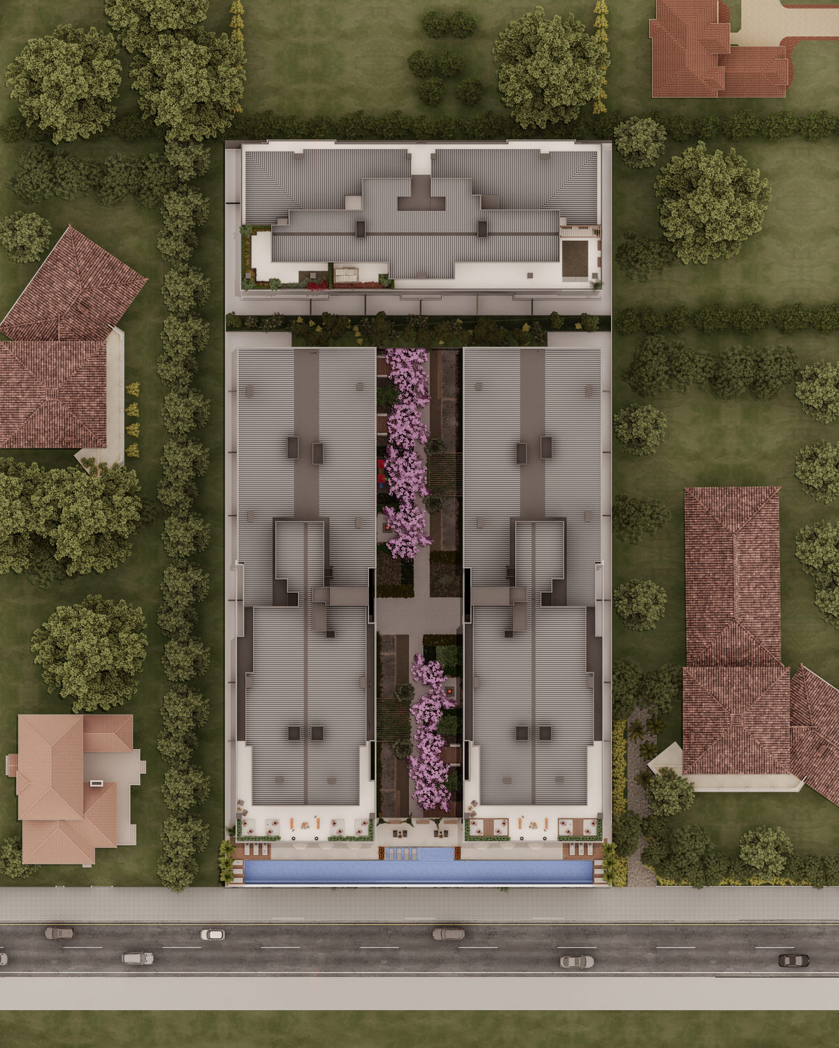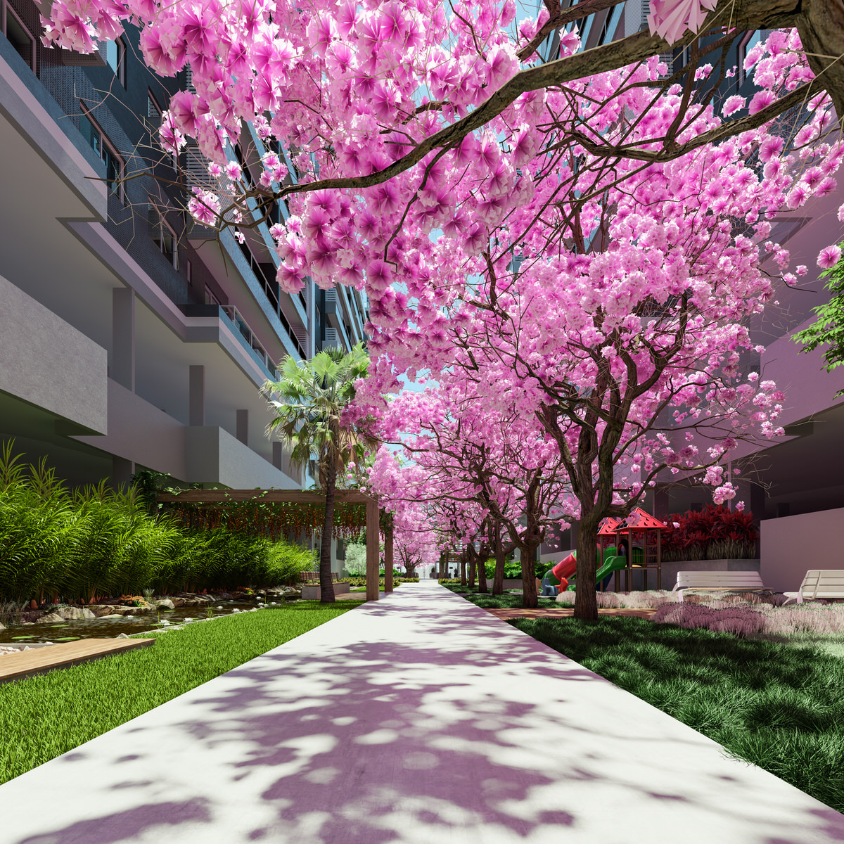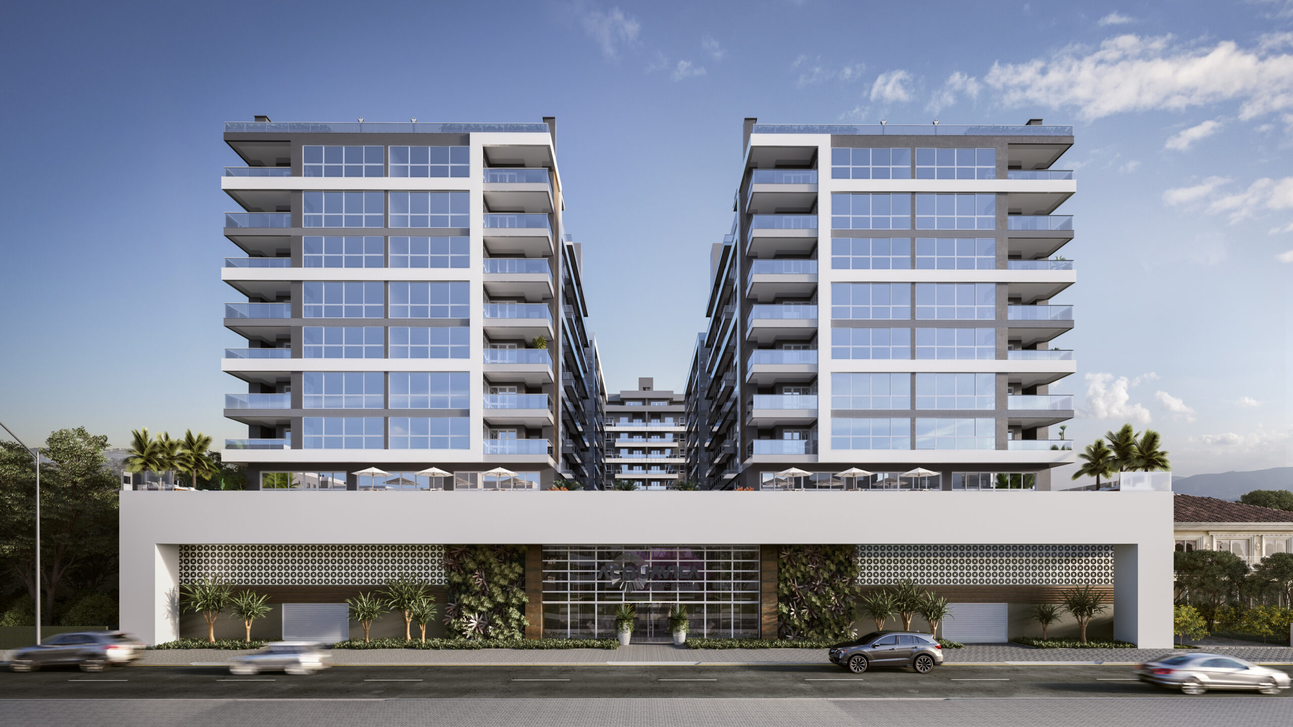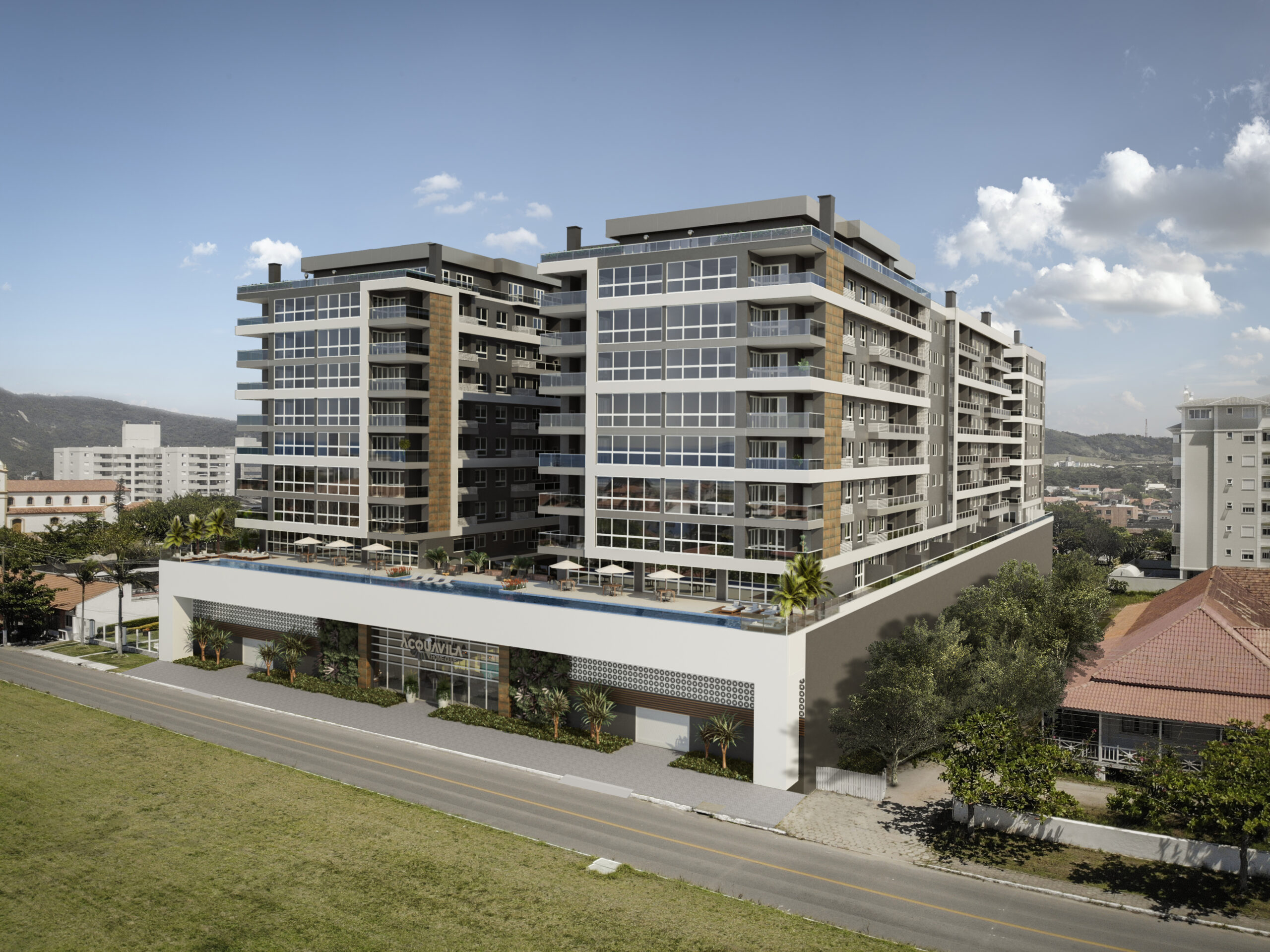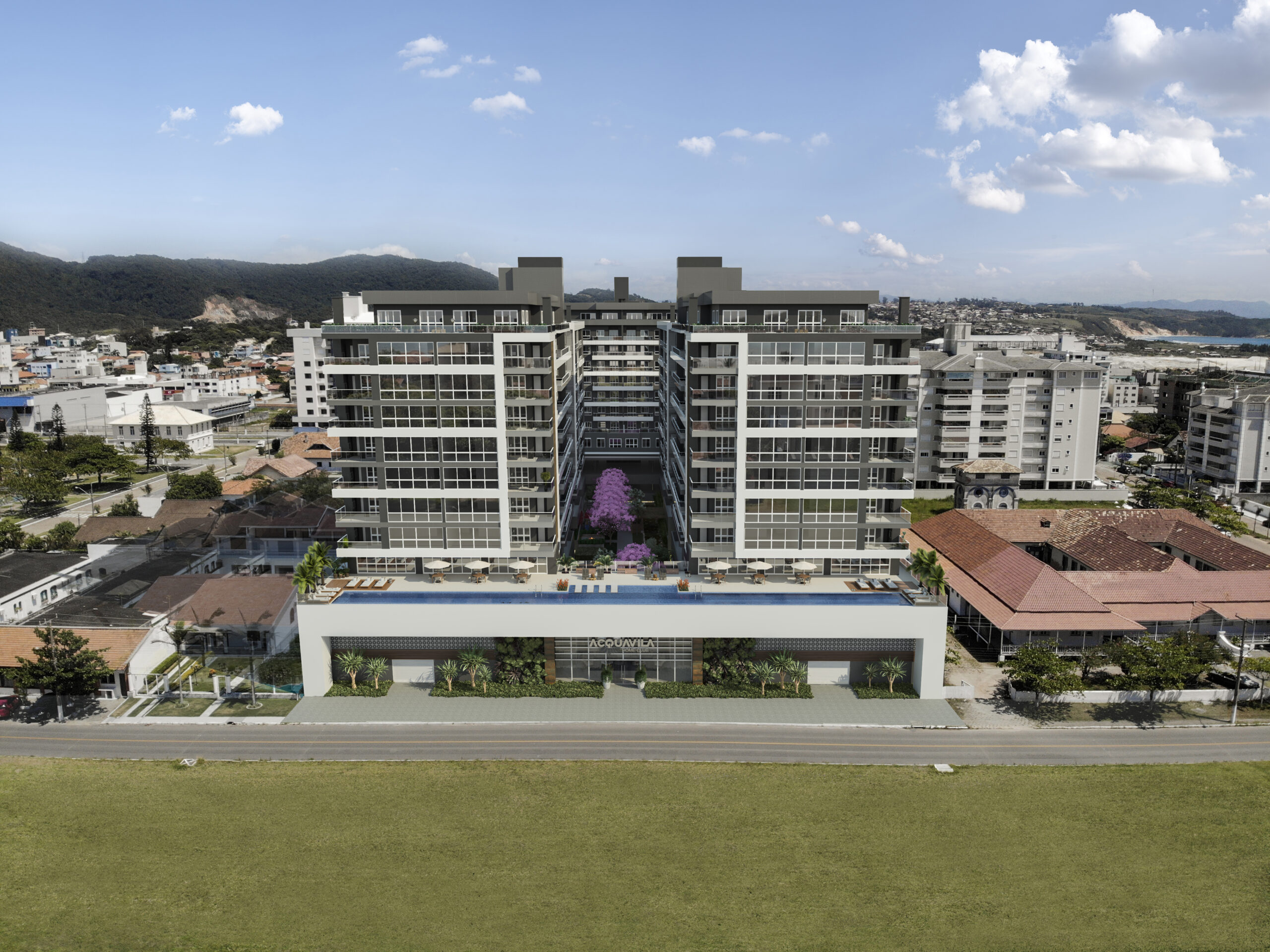 O empreendimento será constituído de 3 torres de apartamentos de 2 e 3 dormitórios com suítes, com 1, 2 e 3 vagas de garagem.