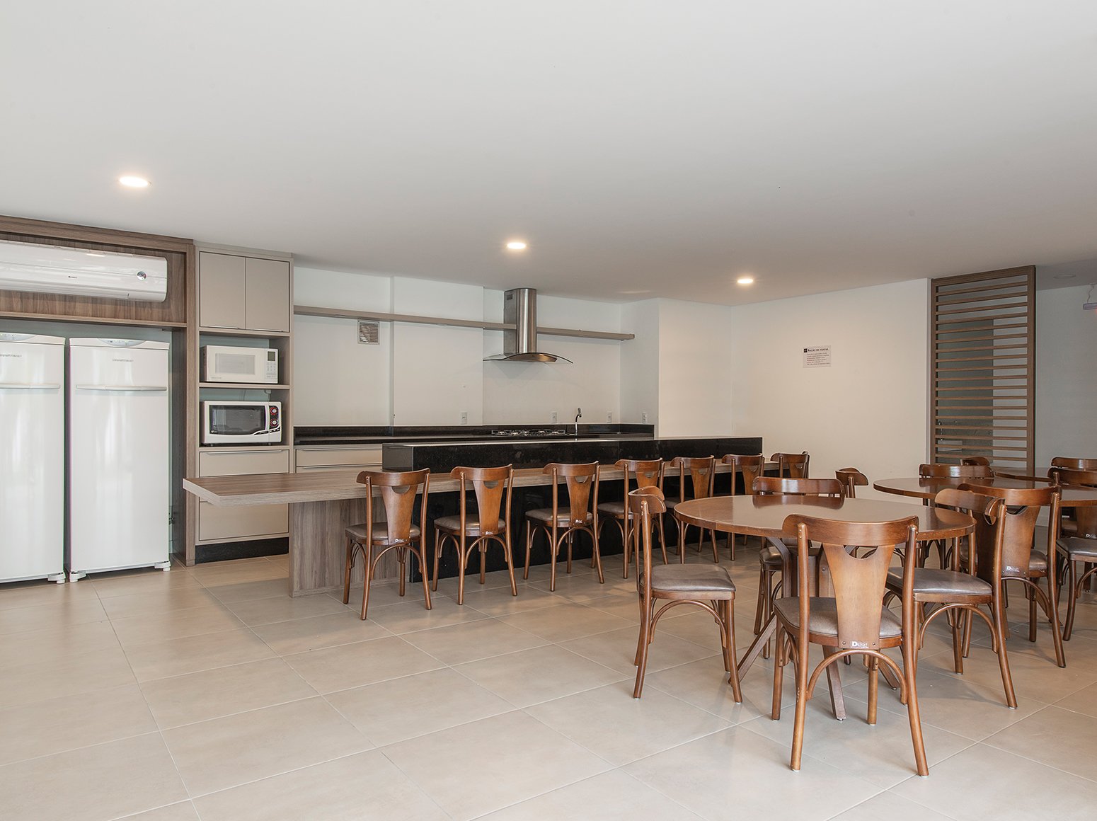 Apartamentos e Coberturas de 2 e 3 dormitórios com suítes, sacada com churrasqueira, hobby box, 1 vaga de garagem para os aptos 2 quartos, 2 vagas para os aptos 3 quartos e 2 vagas para as coberturas, divididos em quatro blocos de 20 unidades.